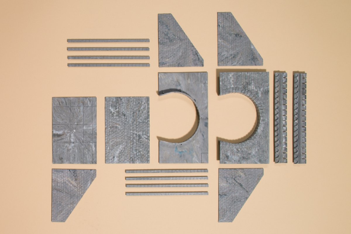 Mit Mauerkrone und 4 Flügelmauern, meliert.