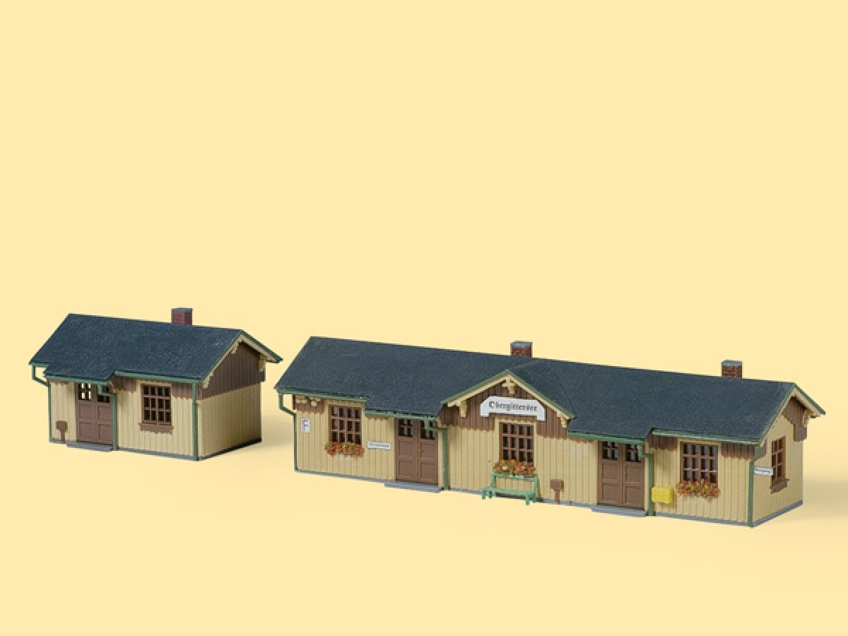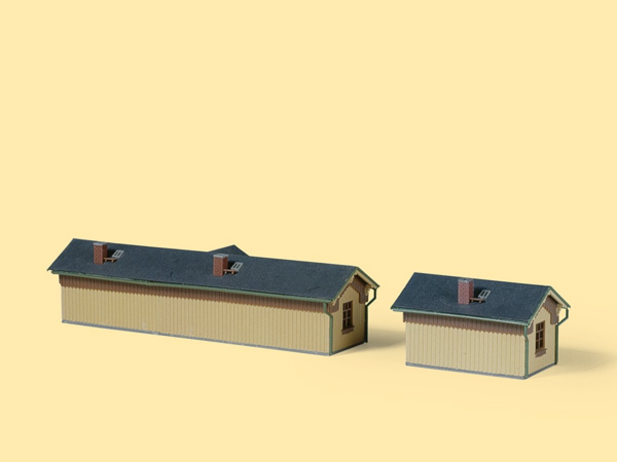 Die holzverschalten Gebäude eignen sich besonders für kleine romantische Anlagen mit Nebenbahnen.