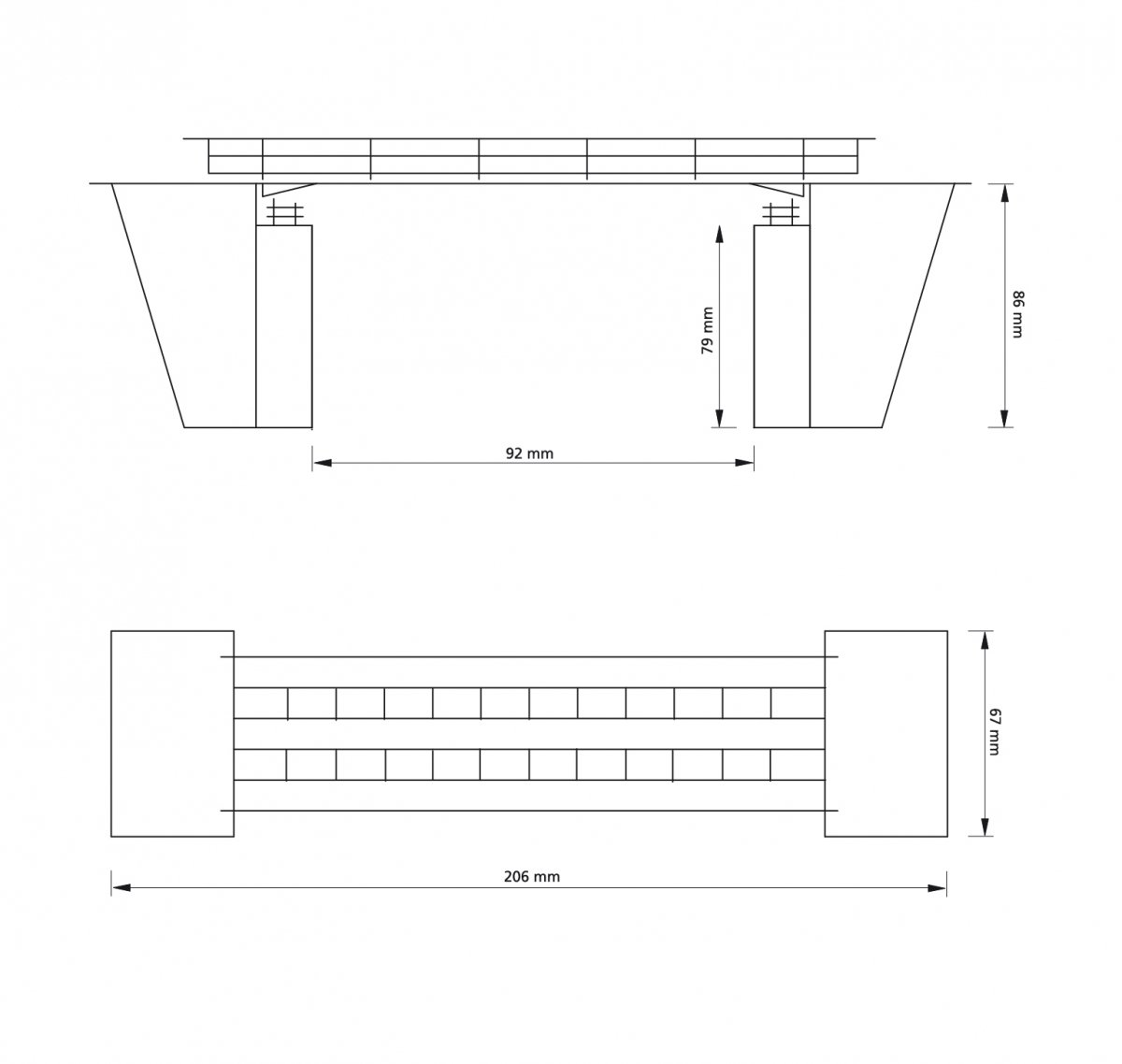 Als Eisenbahnbrücke für eingleisige Strecken geeignet und durch Sollbruchlinien in der Höhe zu kürzen.