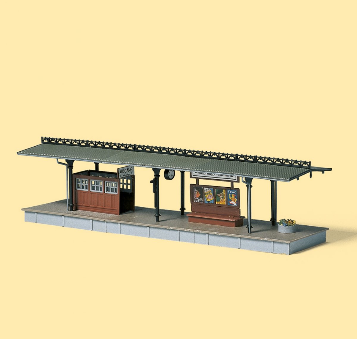 Zur Verlängerung des Bahnsteiges ohne Dach empfehlen wir Auhagen Art. 42573.