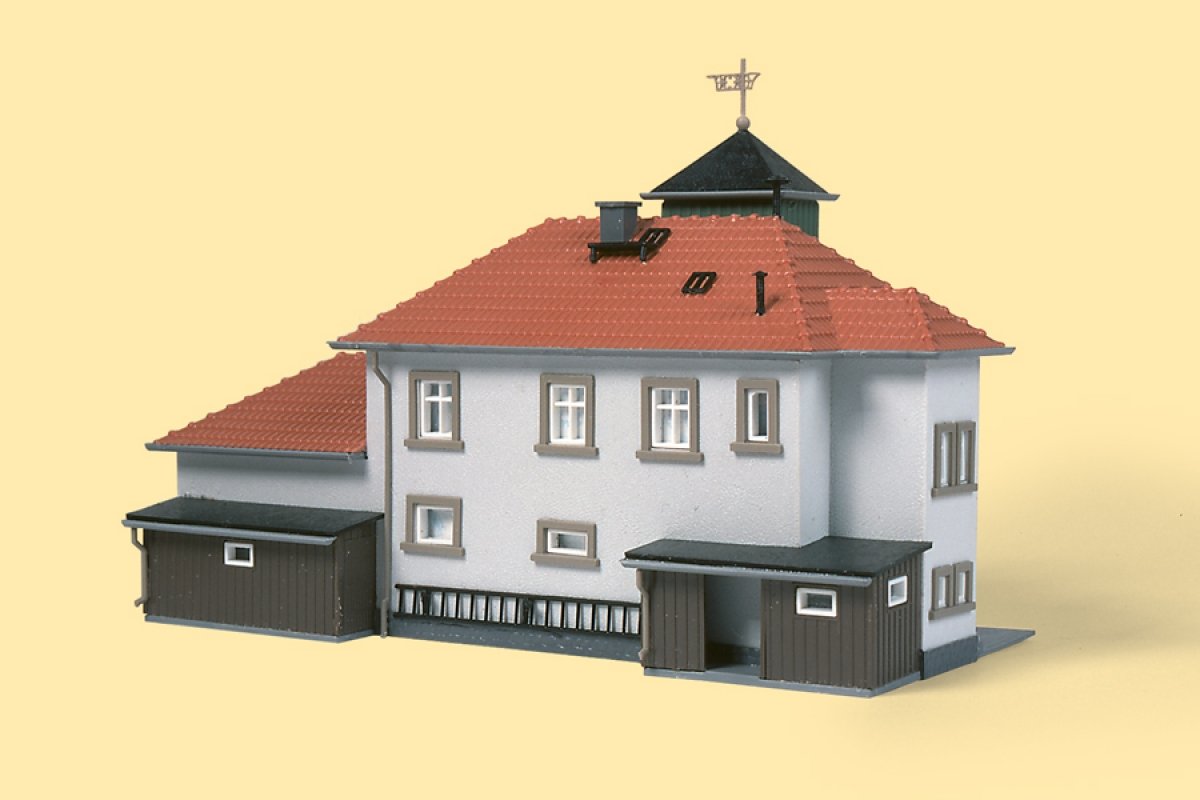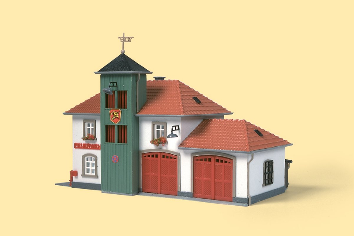 Wir gestalteten ein allseitig interessantes Modell mit hölzernem Schlauchturm, Wohnung für den Brandmeister und großen Toren.