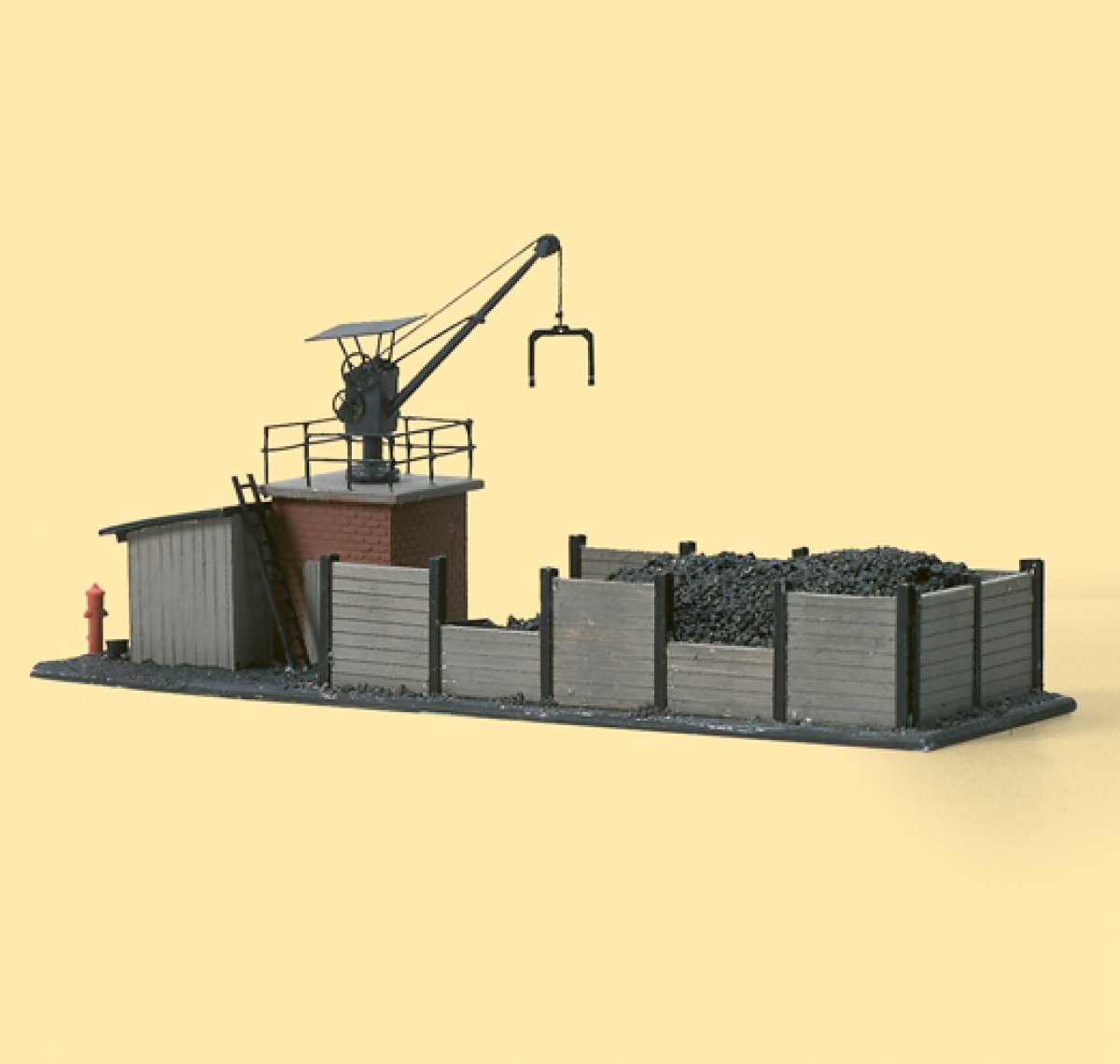 Mit manuell drehbarem Kohlekran, Vorratslager für Kohlen (Kohlebansen) und Geräteschuppen mit Werkzeug.