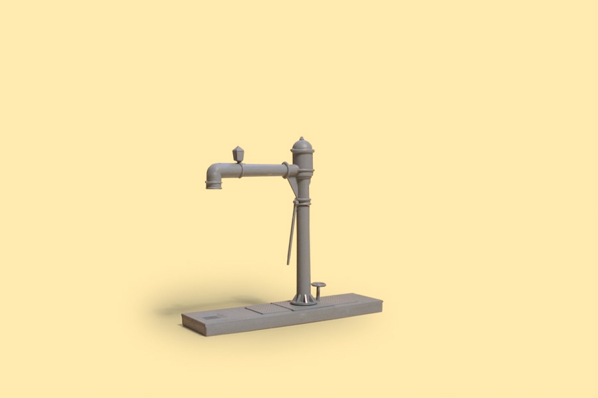 Pflastersteinplatten, Telegrafenmasten, Bänke, Bäume und Bastelfeile liegen bei.