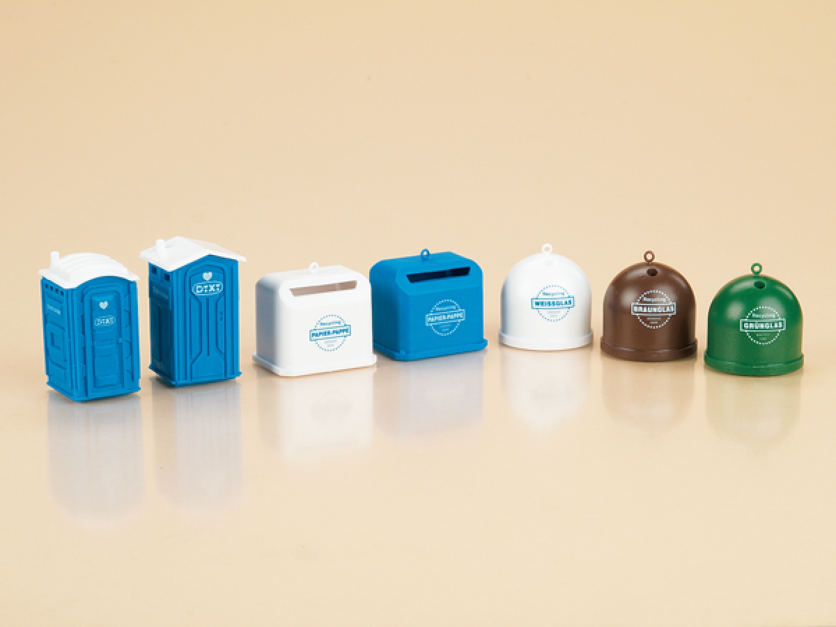 Auhagen 42593 H0/TT 2 Mobiltoiletten, 5 Recyclingcontainer
