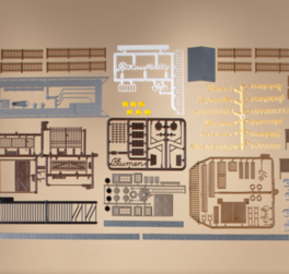 Neben vielen Kleinteilen, wie Badewanne und Gießkannen, Pergola, Blumenspalier, Holztore, PKW-Anhänger, Tafelwagen mit Holzkisten, Schubkarre, Müllkübeln und Briefkästen können Sie mit dem umfangreichen Inhalt auch einen Schauer, einen Wellblechschuppen, einen Bockkran und Tanksäulen gestalten.