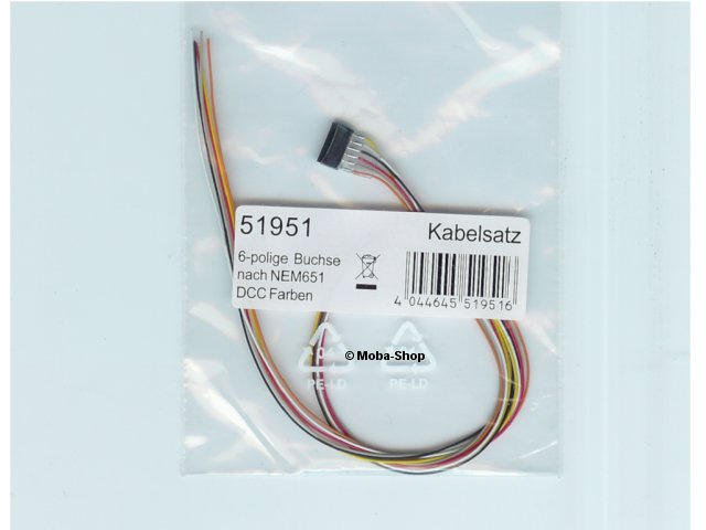 Wenn die umzubauende Lok keine Digitalschnittstelle besitzt, Sie aber den Schnittstellenstecker des Decoders nicht abschneiden möchten, so helfen Ihnen unsere Kabelsätze 51950 bzw. 51951: