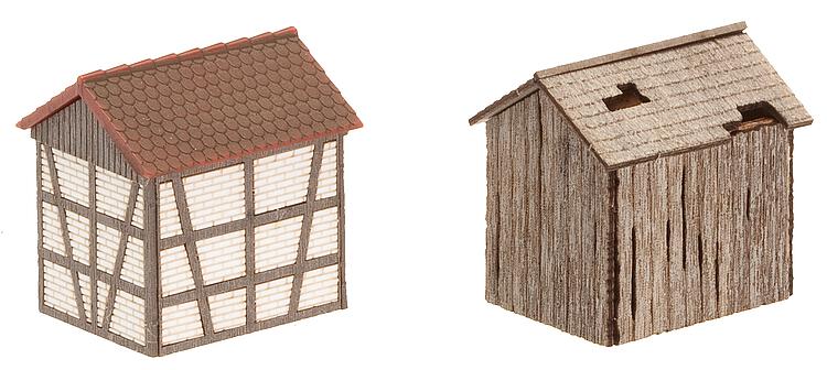Material-Mix aus Kunststoff-, Holz- und Spezialkartonteilen. Die Holzteile sind zusätzlich farblich lasiert.