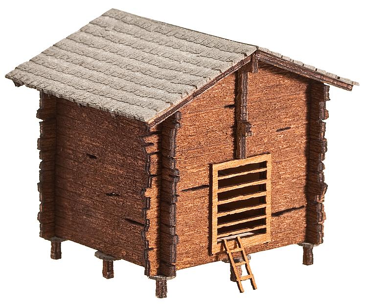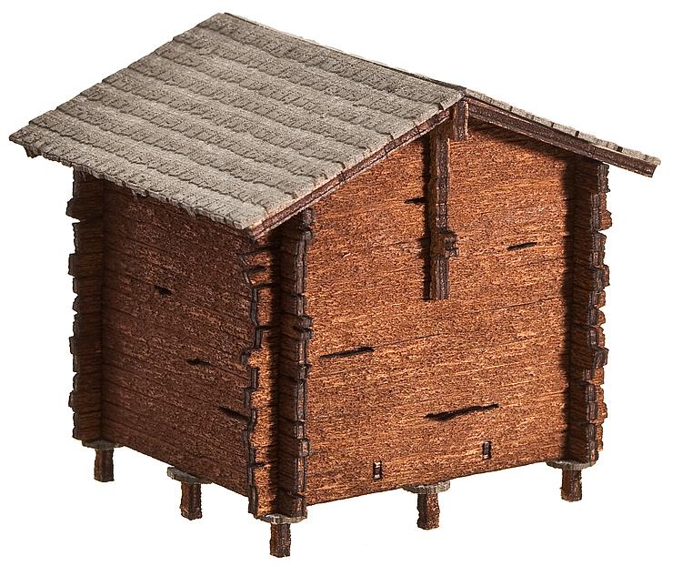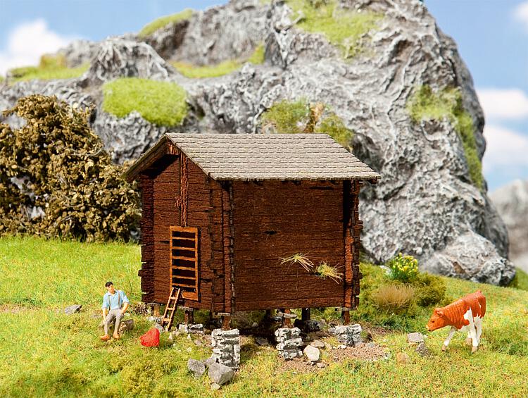 In sehr rustikaler Holzbauweise, wie sie in weiten Teilen der Alpen und im Alpenvorland häufig auf Wiesen und an Hängen stehen.