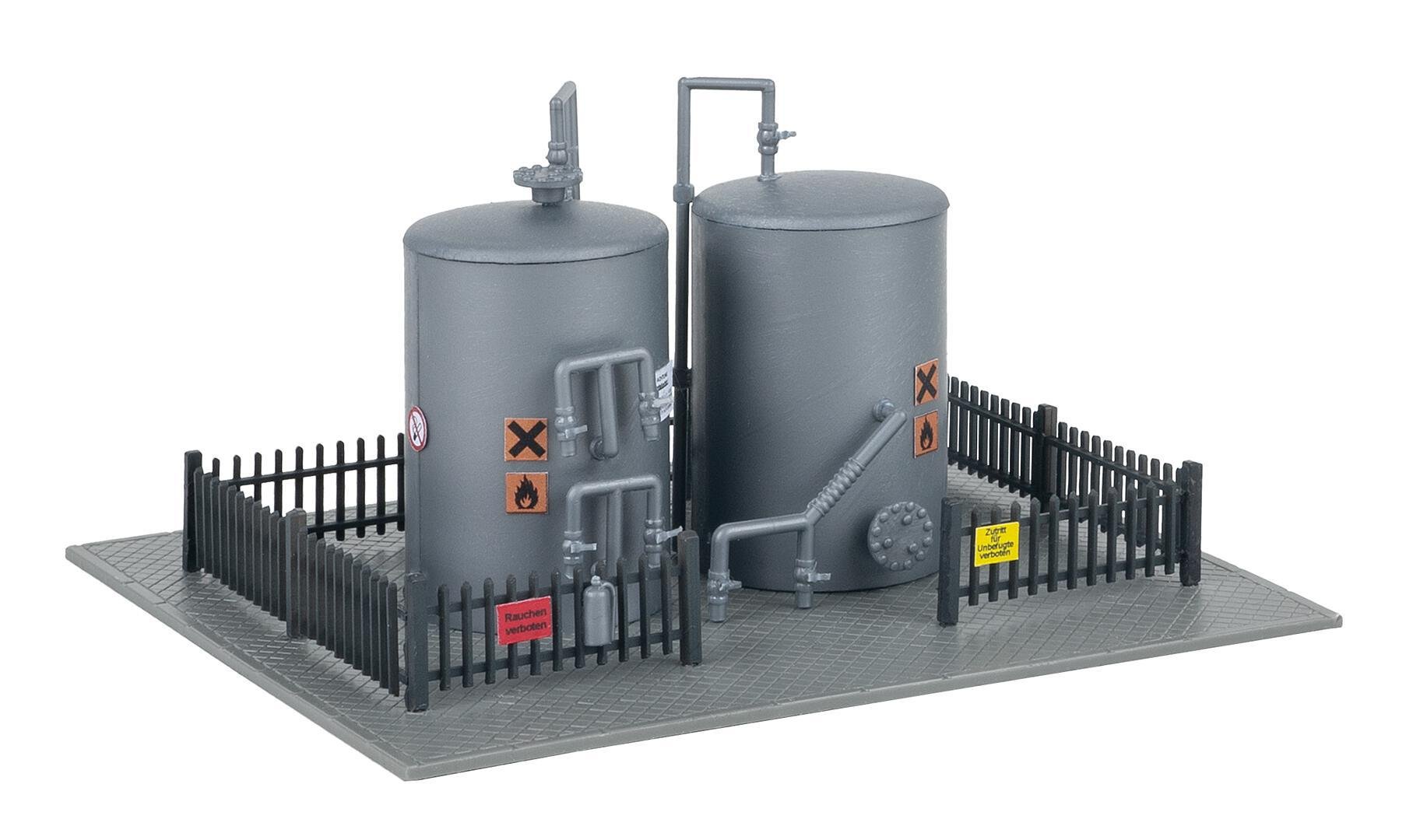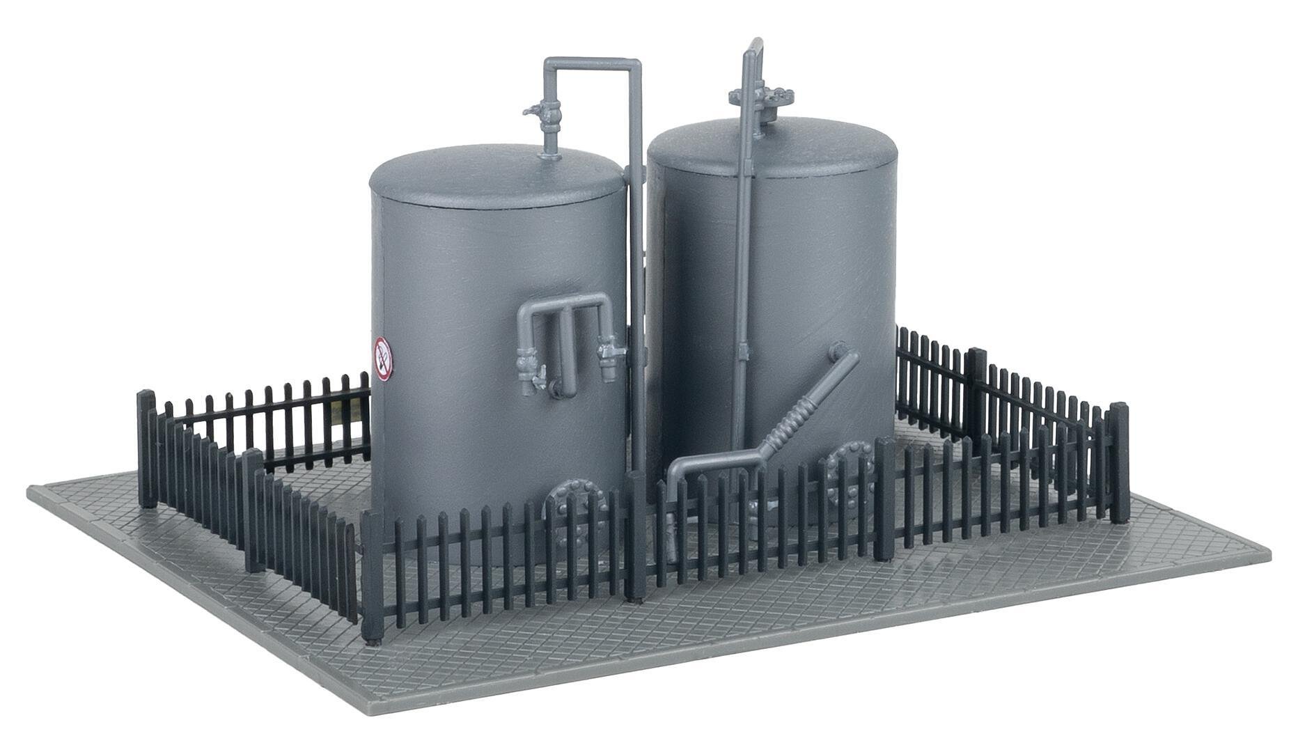 Zwei silberne Lagertanks bringen industriellen Charme auf Ihre Modellanlage.
