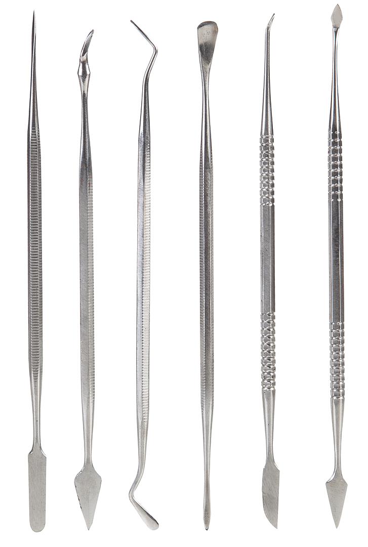 Set bestehend aus 6 Doppel-Spateln mit 12 unterschiedlich geformten Enden und Spitzen für verarbeitende, formende und abtragende Modellierarbeiten.