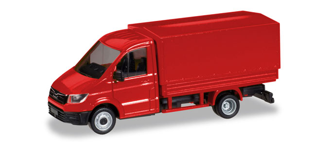 Herpa 093712 MAN TGE Einfachkabine mit Pritsche und Plane, rot