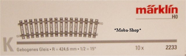 Märklin 2233 (10x) H0~ K-Gleis gebogen, R424,6 mm, 15°