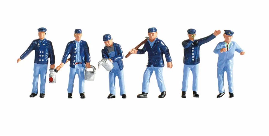 Die Modellfiguren sind in der Spur H0 (Maßstab 1:87, ca. 2 cm hoch) ausgeführt und haben typische Arbeitshaltungen. Die Modelle sind ideal um Lokomotiven, Bahnhofsszenen oder Szenen in einem Bahnbetriebswerk zu dekorieren.