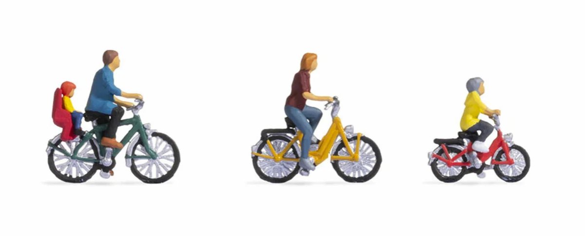 Was gibt es Schöneres als ein Fahrradausflug mit der ganzen Familie? Ob eine Fahrt zum nahe gelegenen See oder Park, meist ist schon die Radtour an sich ein schönes Erlebnis. Bringen Sie diese idyllische Szene mit dem Figuren-Set "Familie beim Fahrradausflug" für die Spur H0 auf Ihre Modellbahnanlage und gestalten Sie diese mit viel Liebe zum Detail aus. Im Set sind eine Mutter und ein Kind enthalten, die beide auf ihrem Fahrrad sitzen. Das Kind trägt einen Helm auf dem Kopf. Der Vater sitzt ebenfalls auf seinem Fahrrad, auf dessen Gepäckträger ein Kindersitz befestigt ist, in dem das zweite Kind Platz genommen hat. Auch dieses trägt einen Helm zur Sicherheit.