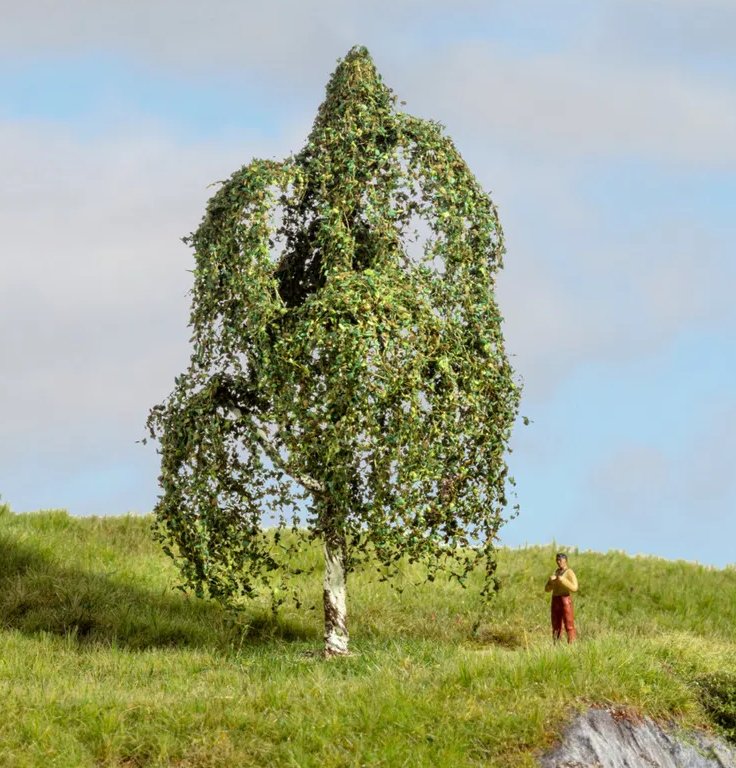 Der Stamm und die herabhängenden Äste sind naturgetreu gefärbt und sorgfältig gestaltet, um den authentischen Charakter einer echten Hängebirke widerzuspiegeln. Erleben Sie mit den NOCH Master-Bäumen ein Höchstmaß an Realismus in Ihrem Modellbauprojekt.