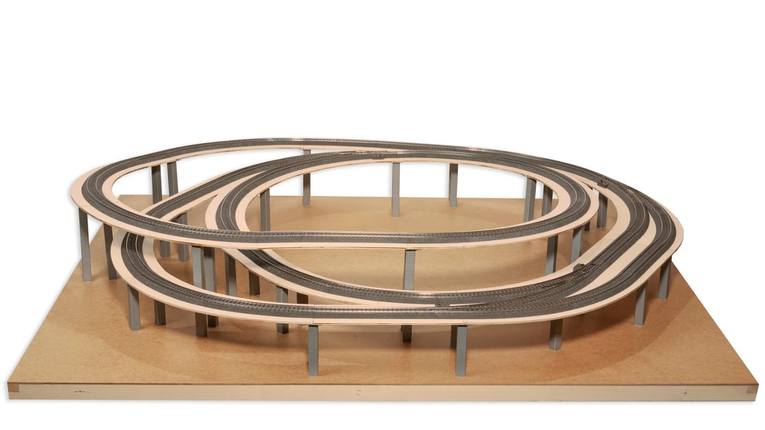 Und natürlich sind auch alle wichtigen Gleispläne im Trassenbausatz enthalten. Alles, was Sie benötigen, sind die Gleise des Herstellers Ihrer Wahl und eine Grundplatte. Dank des durchdachten Easy-Track Systems gelingt Ihnen der Aufbau der Gleisanlage problemlos.