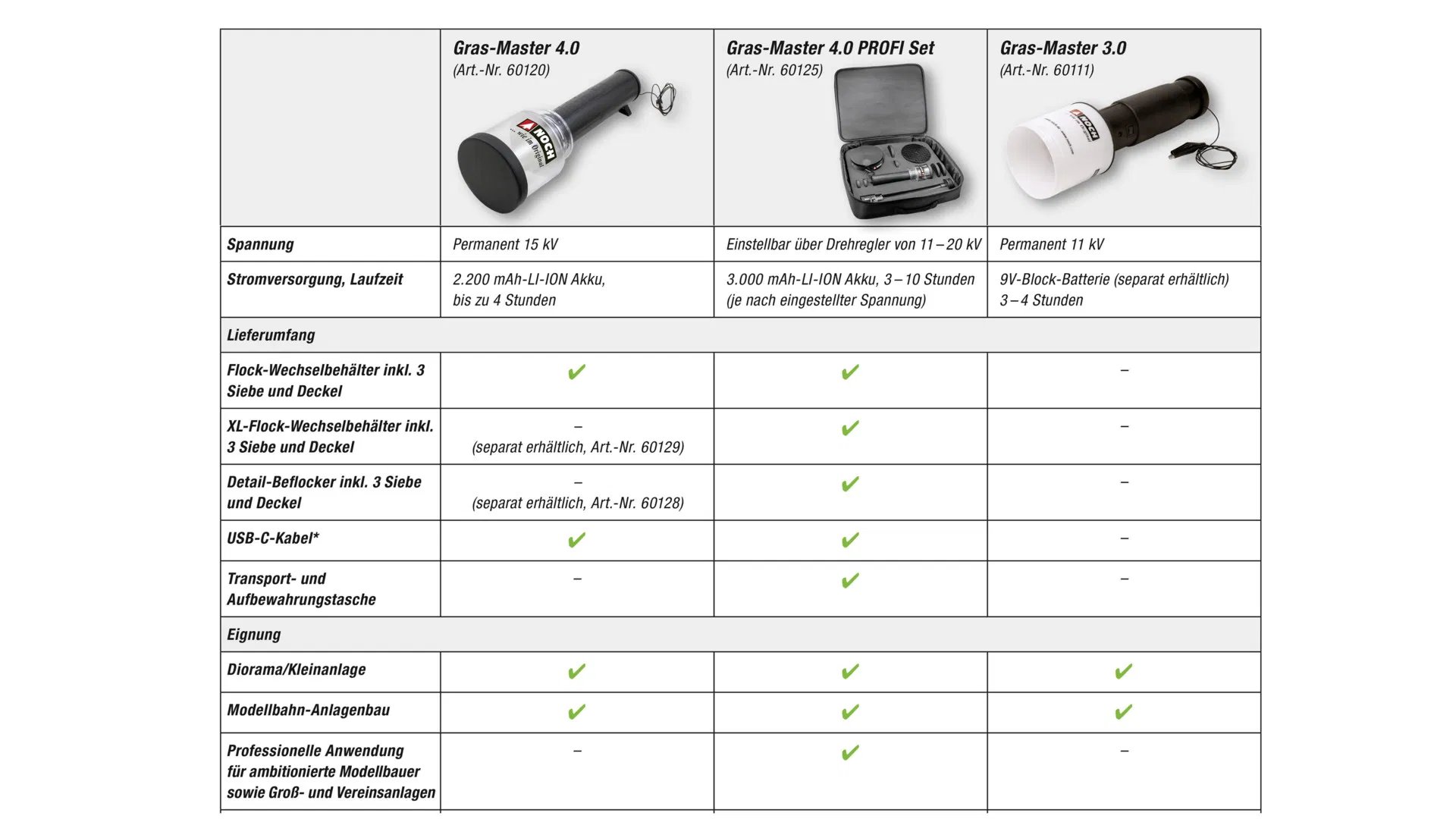 Egal, ob kurze oder lange Fasern – der Gras-Master 4.0 PROFI sorgt für eine gleichmäßige und realistische Begrasung Ihrer Modelllandschaft.