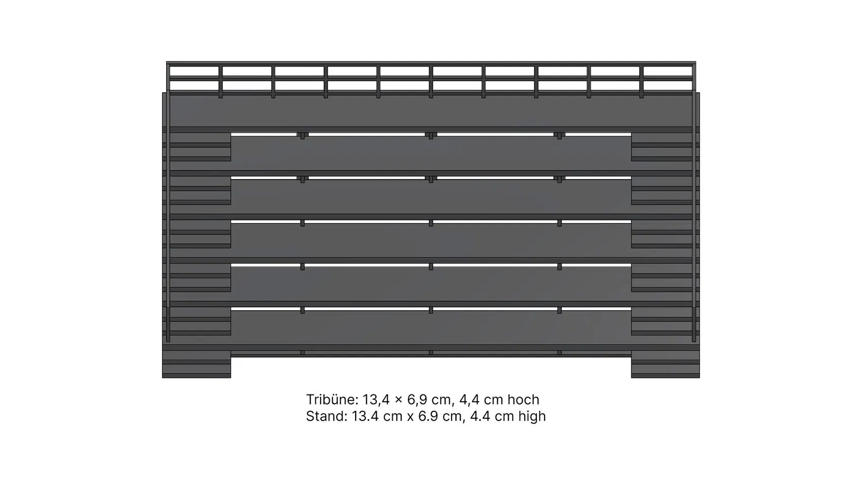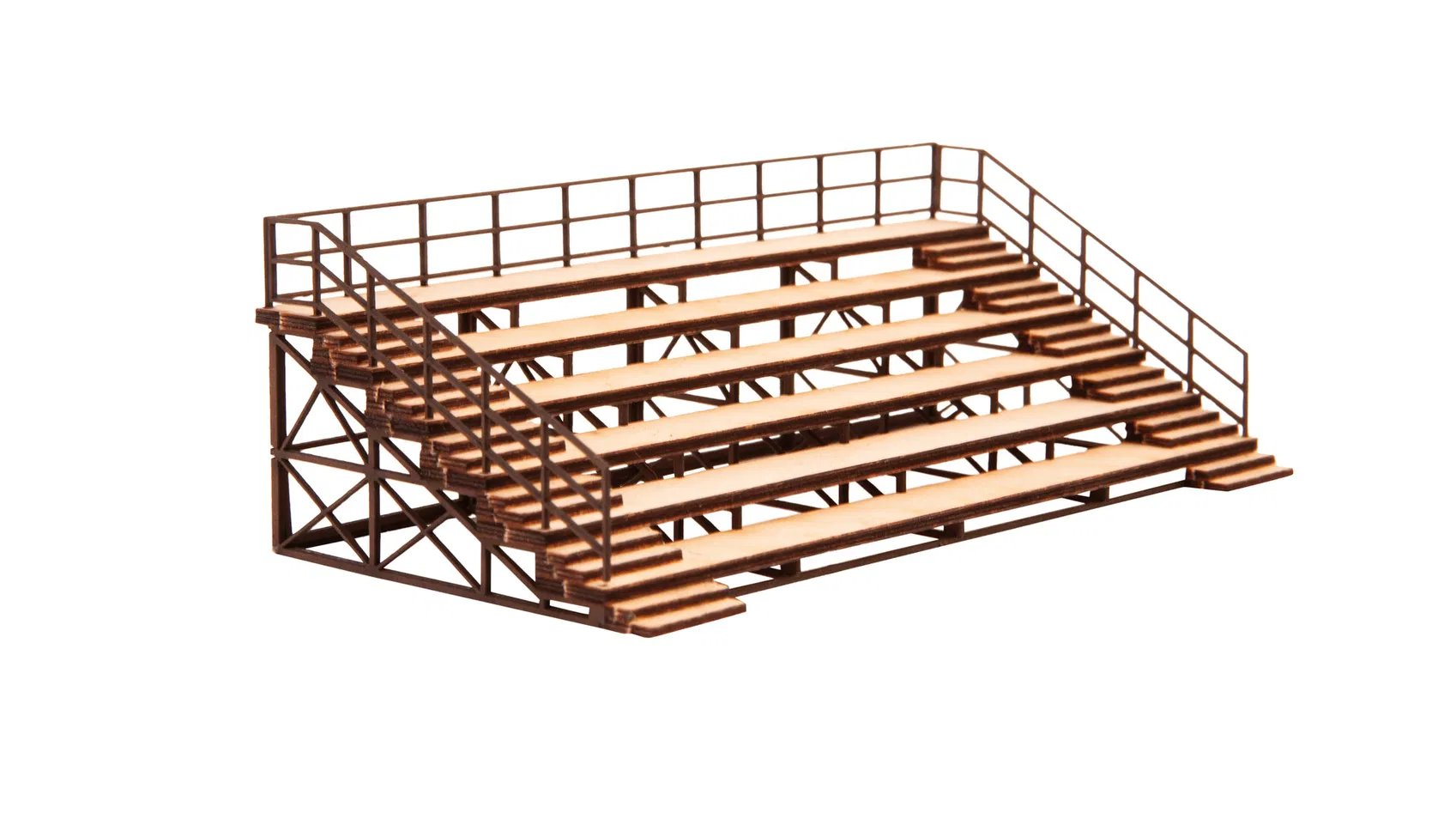 Die Tribüne, präzise gefertigt im Laser-Cut Verfahren, besticht durch ihre realistische Optik und fügt sich nahtlos in jede Modelllandschaft ein.