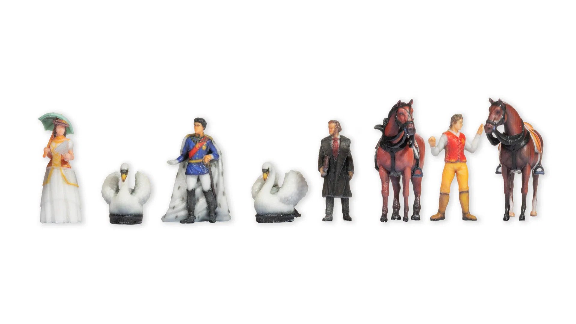 Teil des Lieferumfangs ist das exklusive, achtteilige Figuren-Set, bestehend aus den Figuren König Ludwig II. von Bayern, Kaiserin Elisabeth „Sisi“, Richard Wagner, zwei Pferden, einem Burschen, zwei Schwan-Statuen.