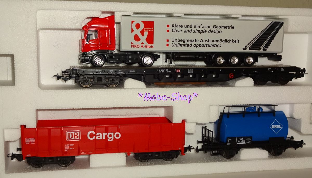 PIKO H0 3-tlg. GW-Set mit Truck, off. Güterwagen und Kesselwagen (aus 57170)