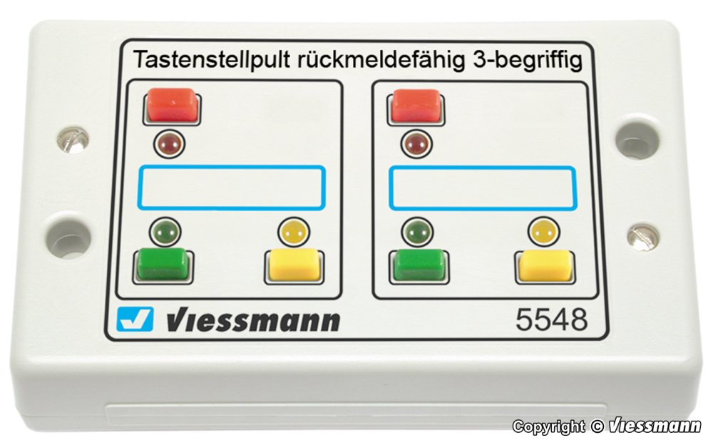Echte Rückmeldung der Stellung der Signale über 6 eingebaute rote, grüne und gelbe LEDs. Mehrere Pulte können aneinandergereiht werden.