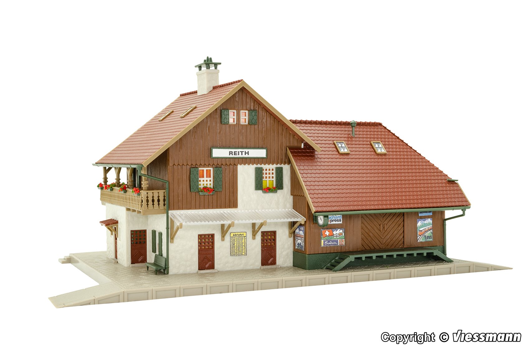 Dieser Bahnhof eignet sich besonders für mittlere und kleine Modellanlagen. Beim Betrachten dieses typischen Gebirgsbahnhofs kommt Ferienstimmung auf.