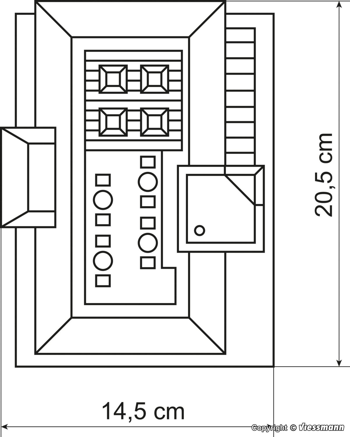 L 20,5 x B 14,5 x H 9 cm.
