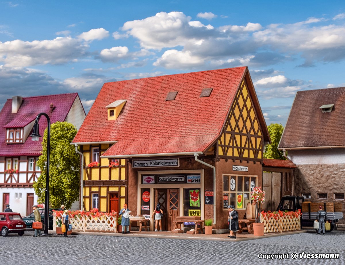 Dieser detailgetreue und wirklichkeitsnahe Tante Emma-Laden sorgt für rustikale Romantik auf der Modellbahnanlage.