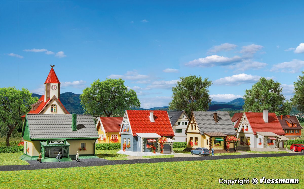 Mit den Bausätzen der Vollmer Adlerstraße 2 – 8 können Sie einen kompletten Straßenzug mit Wohn- und Geschäftshäusern gestalten.