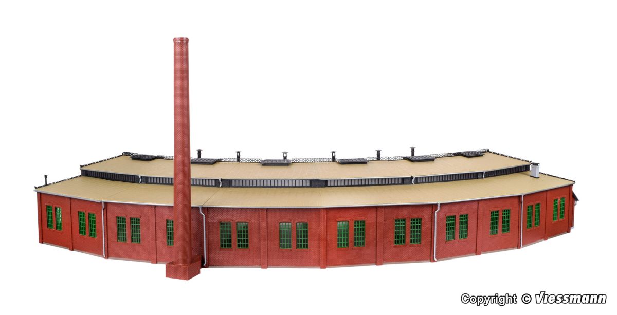 Die Drehscheiben von Fleischmann Art. 6152 und Märklin Art. 7286/7686 für 15°-Teilung können mit diesem Ringlokschuppen verwendet werden.