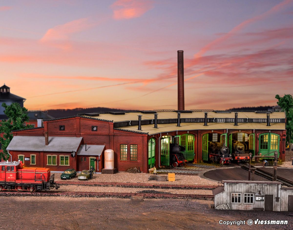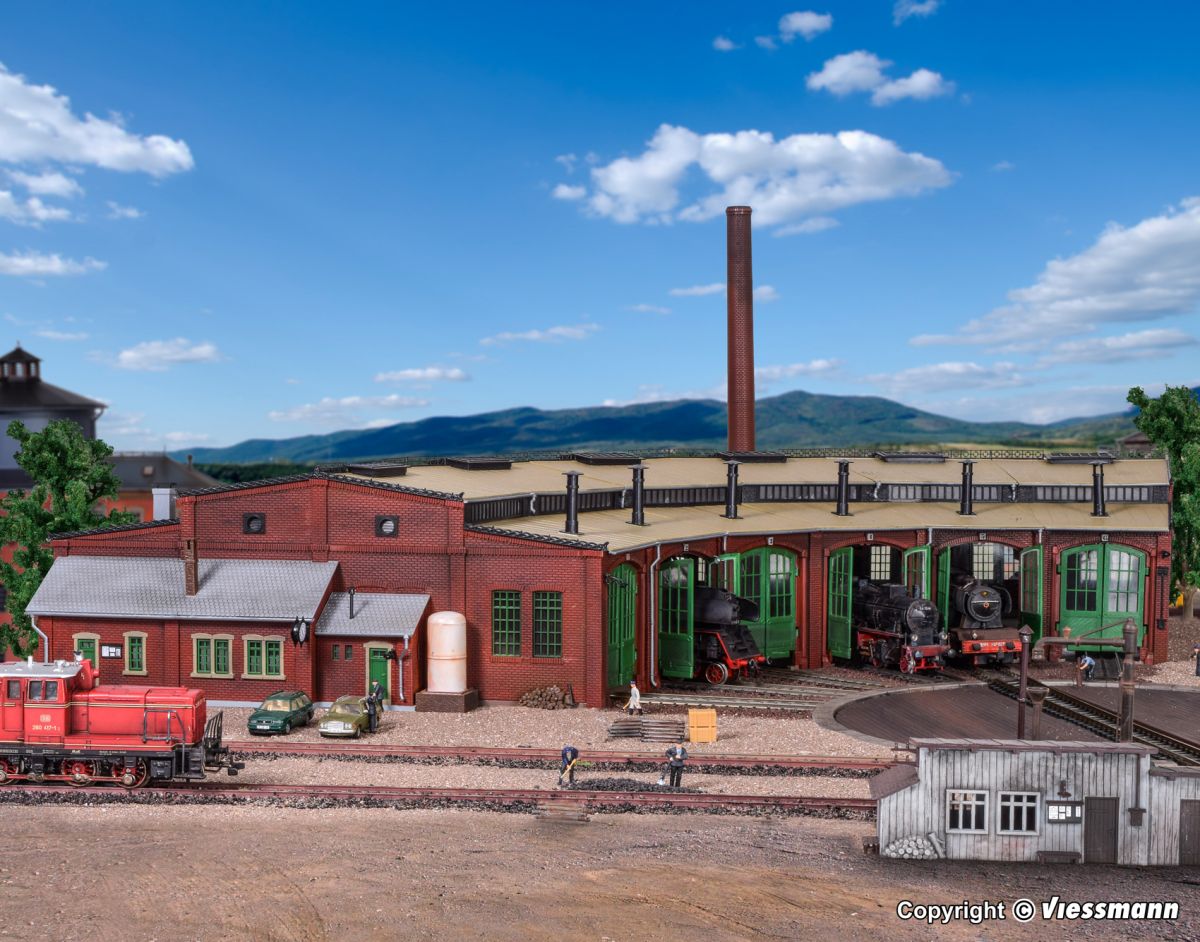 Der Mittelpunkt jeder Eisenbahnanlage ist zweifellos ein Dampflok-Bw mit Drehscheibe, Ringlokschuppen und allem Drumherum.