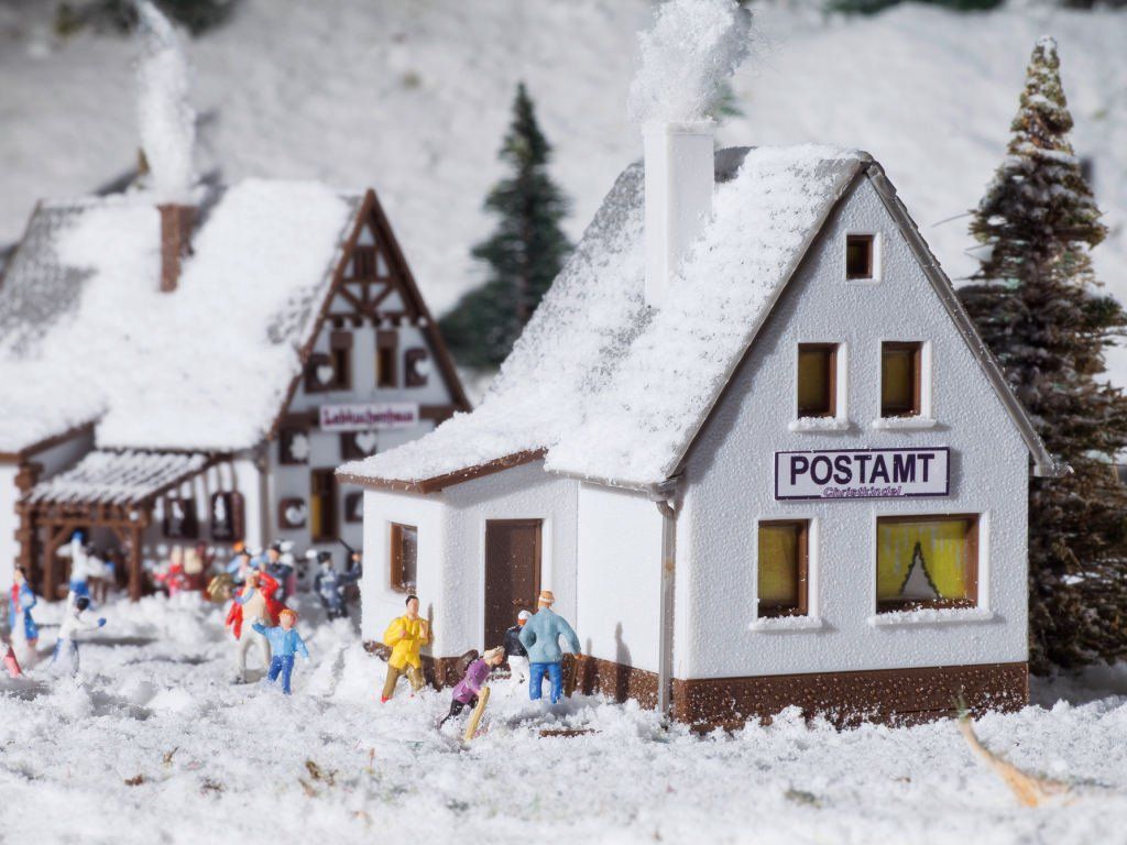 Dieses Postamt passt gut in eine winterliche Umgebung und kann perfekt mit der Stille-Nacht-Kapelle Vollmer 47612 und dem Lebkuchenhaus 47617 kombiniert werden.